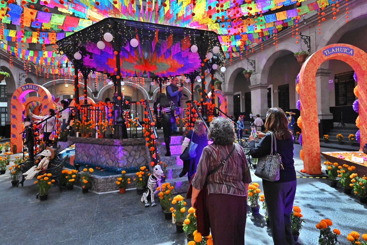El recorrido continuó con la Ofrenda Monumental instalada por la Oficialía Mayor en Palacio de Gobierno que se exhibió del 28 de octubre al 4 de noviembre, un homenaje al legado ancestral de nuestro pueblo. Ahí, los más de 12 mil 300 asistentes contemplaron cinco canoas adornadas con símbolos de las principales etnias mexiquenses, un kiosco que evocaba la unión de los 125 municipios, un lago simbólico y arcos florales que narraban, con solemnidad y belleza, el regreso de las almas desde el Mictlán hasta el mundo de los vivos.