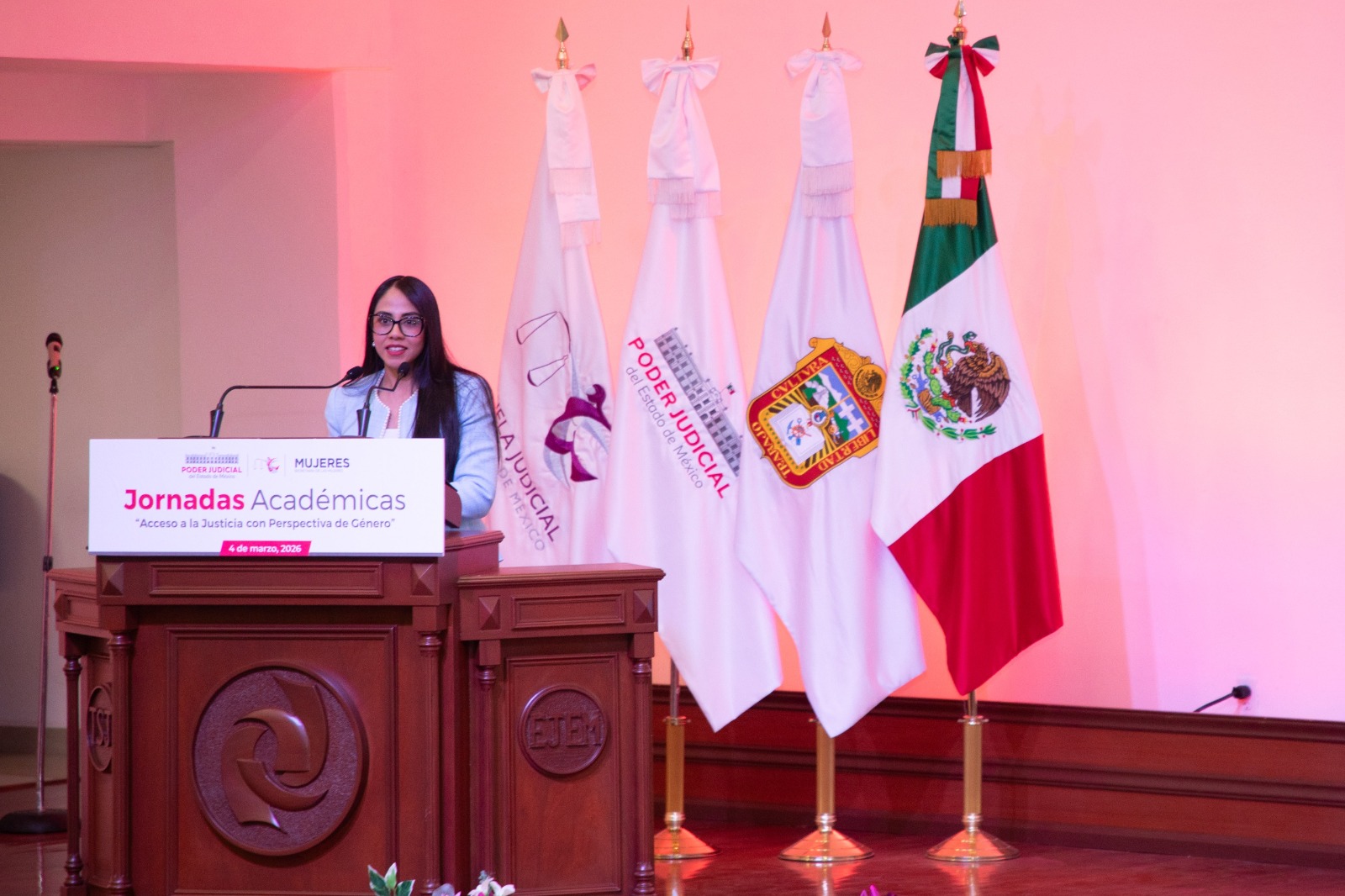 El Poder Judicial del Estado de México y la Secretaría de las Mujeres inauguraron las Jornadas Académicas “Acceso a la Justicia con Perspectiva de Género”, un espacio de análisis y reflexión en el que especialistas abordan temas como violencia vicaria, feminicidio, sesgos de género y criterios internacionales en materia de derechos humanos.